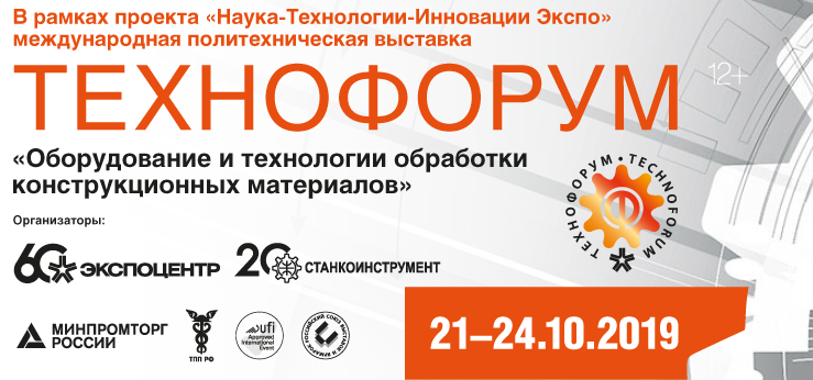Международная выставка технологий обработки металлов пройдет с 21 по 24 октября в ЦВК «Экспоцентр», Москва. В этом году выставка «Технофорум» впервые проводится в рамках межотраслевой платформы «НТИЭкспо» (Наука-Технологии-Инновации Экспо), которая объединяет масштабные мероприятия с государственным участием, ориентированные на реализацию национальных проектов и выполнение приоритетных задач по цифровизации экономики.
