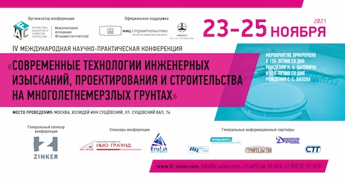 Международная Ассоциация Фундаментостроителей приглашает принять участие в IV международной научно-практической конференции «Современные технологии инженерных изысканий, проектирования и строительства на многолетнемерзлых грунтах», которая состоится 23-25 ноября 2021 года в Москве, Холидей Инн Сущёвский (Holiday Inn Suschevsky),