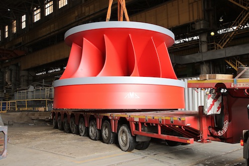Специалисты Ленинградского Металлического завода изготовили и завершили отгрузку 86-тонного рабочего колеса гидротурбины, предназначенного для гидроагрегата № 4 строящейся в Магаданской области Усть-Среднеканской ГЭС.