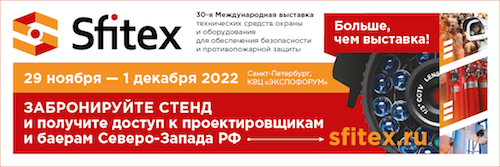 30-я Международная выставка технических средств охраны и оборудования для обеспечения безопасности и противопожарной защиты SFITEX состоится в Санкт-Петербурге, в КВЦ «Экспофорум» (павильон F), с 29 ноября по 1 декабря 2022 года.