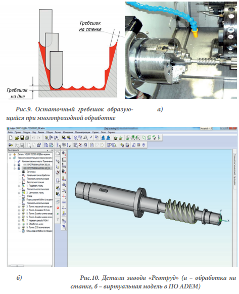 Кроме того, в зависимости от требований, предъявляемых к чистоте поверхности и геометрии применяемого инструмента, высота оставляемого гребешка может назначаться несколькими способами. Первый вариант — это определение величины оставляемого гребешка на поверхностях боковых стенок лопаток шнека. Второй вариант — это определение максимальной высоты оставляемого гребешка как на поверхностях боковых стенок лопаток так и на дне межлопаточного пространства — на втулке шнека.