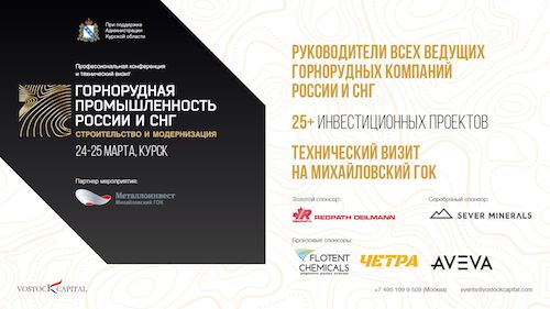 Рады сообщить, что 200+ руководителей горнодобывающих предприятий России и СНГ, а также компаний-поставщиков технологий, оборудования и услуг для отрасли принимают участие в международной профессиональной Конференции и техническом визите «Горнорудная промышленность России и СНГ 2021: строительство и модернизация» (Курск, 24-25 марта 2021). Мероприятие проходит при поддержке Администрации Курской области.