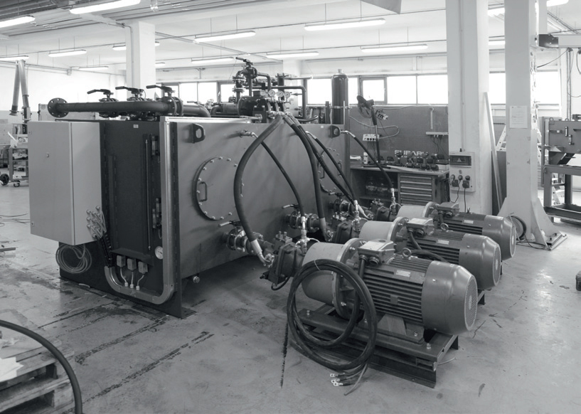 Гидравлическая насосная станция CTR-KV1095, служащая для привода нижних и верхних выталкивателей, разжима штампов, смены инструмента и подъема штампового блока, и станция циркуляционной смазки CTR-KV1096, служащая для смазки направляющих, подшипников, зубчатых передач кривошипного пресса усилием 4000 тс, предназначенного для производства поковок из черных и цветных металлов. Гидростанции сконструированы на базе стального гидробака, на котором смонтированы мотор-насосные группы, распределительно-регулирующее, контрольно-измерительное, фильтрационное и прочее оборудование и принадлежности.