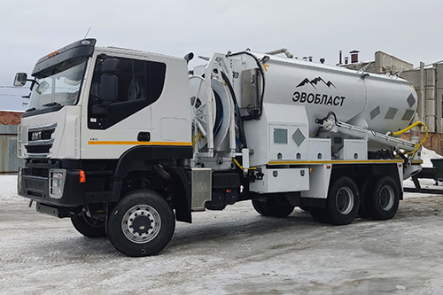 В 2024 году технологический лидер отечественного рынка в области буровзрывных работ Группа ЭВОБЛАСТ и компания-производитель техники и решений для изготовления эмульсионных взрывчатых веществ ИНТЕО представили новую смесительно-зарядную машину на шасси АМТ. Первая модель уже работает на одном из горнометаллургических предприятий.