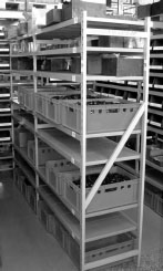По нагрузкам данные стеллажи относятся к самой легкой серии (80-150кг на полку) и предназначены для хранения небольших штучных грузов, коробок, контейнеров.