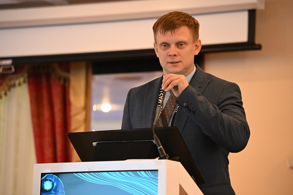 Сергей Мозер, директор по стратегическому развитию Группы ЭВОБЛАСТ, руководитель направления ЭВОБЛАСТ Инжиниринг, представил инновационные технологии для подземных и открытых горных работ. В их основе лежит эффективность, безопасность и экономическая доступность.