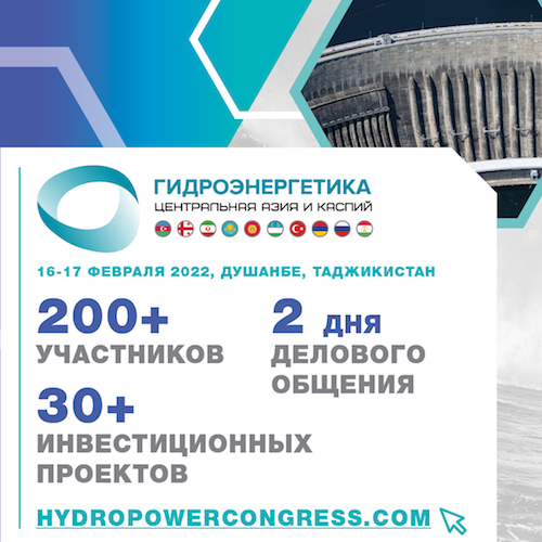 Продолжается регистрация на 6-й ежегодный международный конгресс и выставку «Гидроэнергетика Центральная Азия и Каспий» (16–17 февраля 2022, Душанбе, Таджикистан). Не упустите возможность познакомиться с руководителями крупнейших компаний в сфере ВИЭ Таджиистана, Узбекистана, Казахстана, Армении, Грузии, Кыргызстана, Азербайджана, Ирана и России.